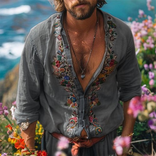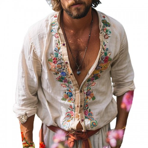 Description: This is a men's casual vintage embroidered long sleeve shirt. designed to blend classic vintage charm with modern comfort. It features intricate embroidery that adds a unique touch of elegance and sophistication. making it a standout piece in any wardrobe. Perfect for casual outings. social events. or even a relaxed day at work. this shirt effortlessly combines style and practicality.